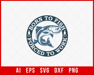 Born to Fish Forced to Work Funny Fishing T-shirt Design Digital Download File